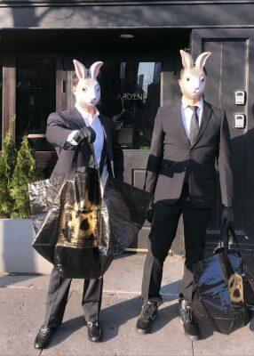 Điểm đặc biệt của suất ăn cao cấp này là được giao tận nơi bởi hai nhân viên mặc vest bảnh bao, đeo mặt nạ thỏ.