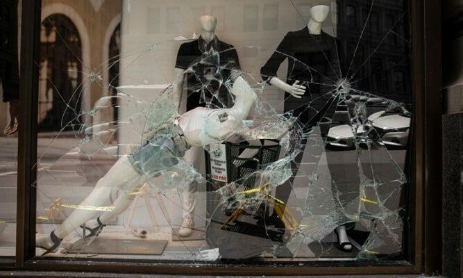 Người biểu tình quá khích đã tràn xuống Broadway và di chuyển qua các tuyến phố ở khu SoHo, để lại sự tàn phá nghiêm trọng từ các tiệm thuốc tây cho đến chuỗi cửa hàng đồ hiệu như Channel, Adidas hay Dolce & Gabbana.