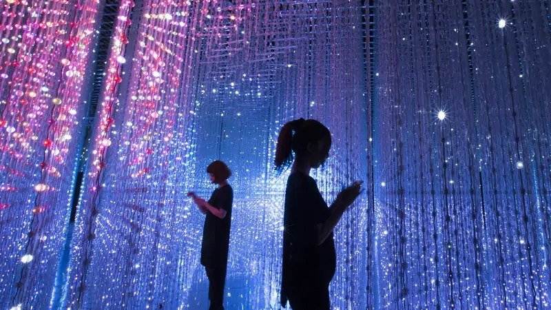 Một trong những tác phẩm sắp đặt mang tên “Vũ trụ pha lê” là một hành trình đáng kinh ngạc đến các ngôi sao. Du khách được bao phủ bởi hơn 170.000 đèn LED phản ứng với sự hiện diện của họ.