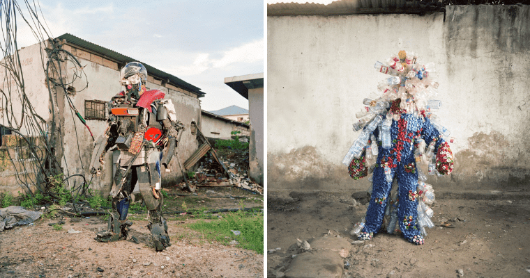 Nghệ sĩ người Bỉ gốc Congo Jean Precy Numbi Samba, còn được gọi là “Robot Kimbalambala,” đã tận dụng những chiếc ô tô bị bỏ rơi để làm bộ trang phục siêu thực của mình. Từ những tấm kim loại cho đến những sợi dây bị ngắt kết nối, Samba biến những phương tiện cũ kỹ của họ thành thứ mà anh ấy gọi là “áo giáp” để thu hút sự chú ý đến mức tiêu thụ và lãng phí ở DRC.
